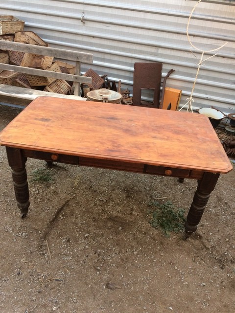 Antique Rustic Farmhouse Kitchen Table On Castors Dining Tables